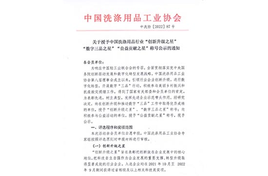 关于授予中国洗涤用品行业“立异升级之星”“数字三品之星”“公益孝顺之星”称呼公示的通知...