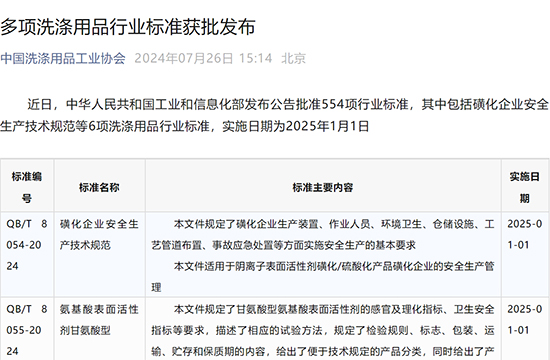 多项洗涤用品行业标准获批宣布...